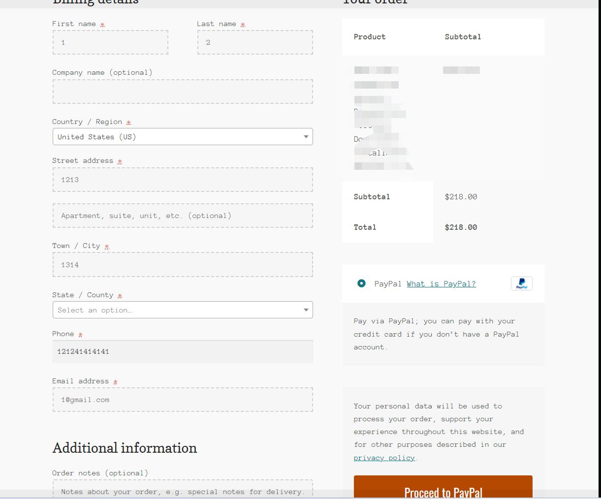 input your information,*marked is necessary,then click “Processed to PayPal”