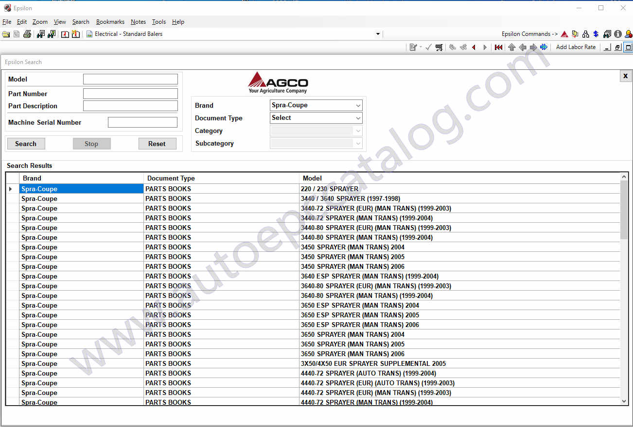 AGCO Spra-Coupe NA EPC & Service Manuals Features: