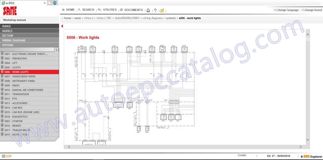 Deutz-Fahr SDF e-Parts is the parts catalog for the folowing models: