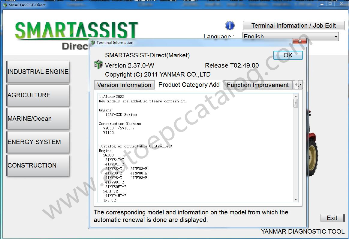 Yanmar Smart Assist SA-Direct is a special diagnostic software based on Windows PC for YANMAR machine.It support Yanmar products like engine,truck,excavator and other models.