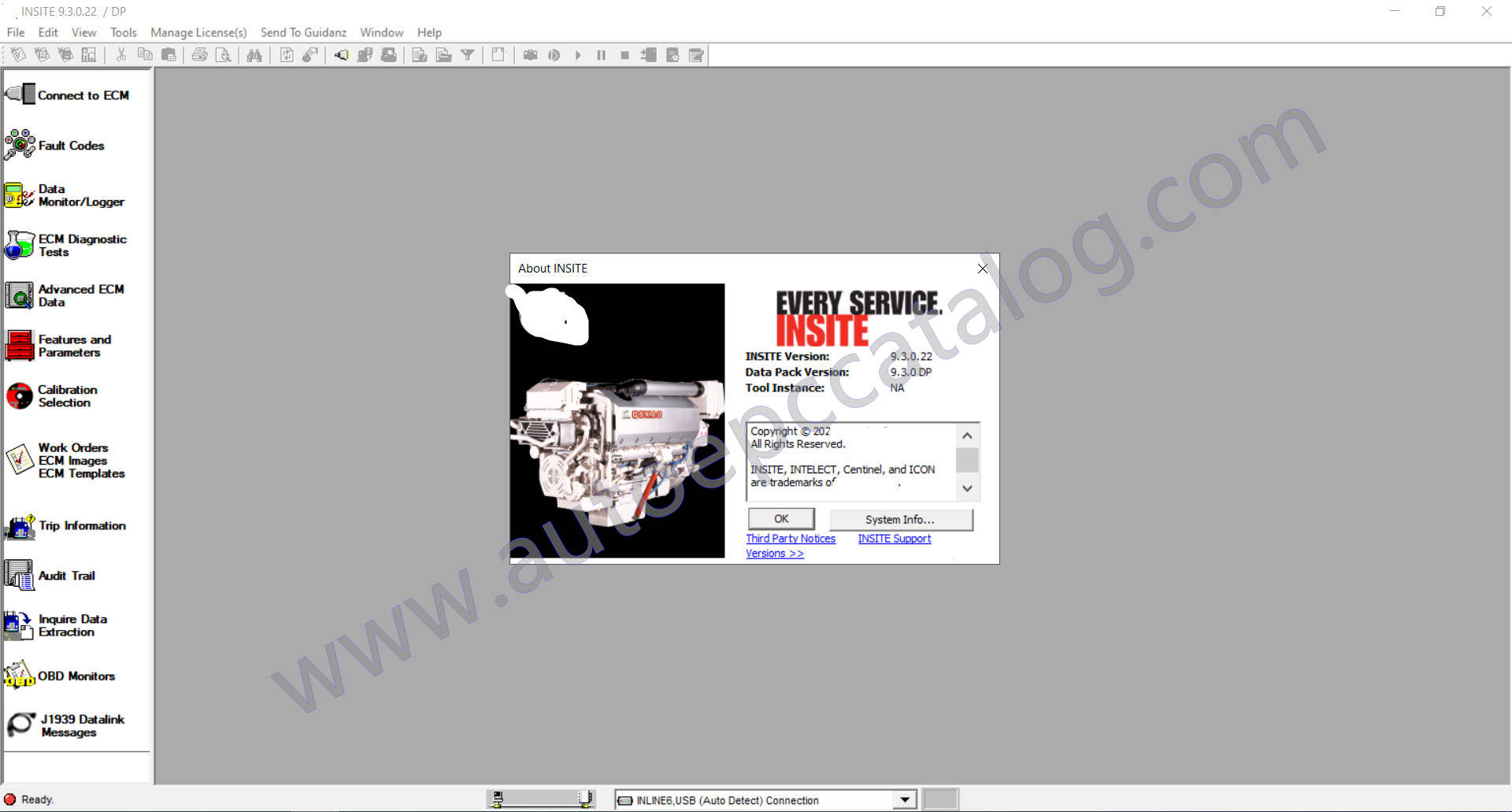 INSITE 9.2 is a Microsoft Windows based electronic service diagnostic program that allows you to troubleshoot electronic engines.