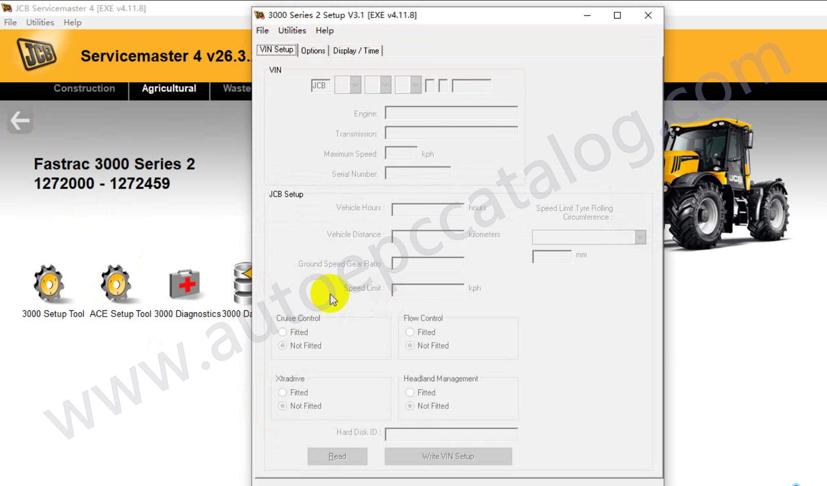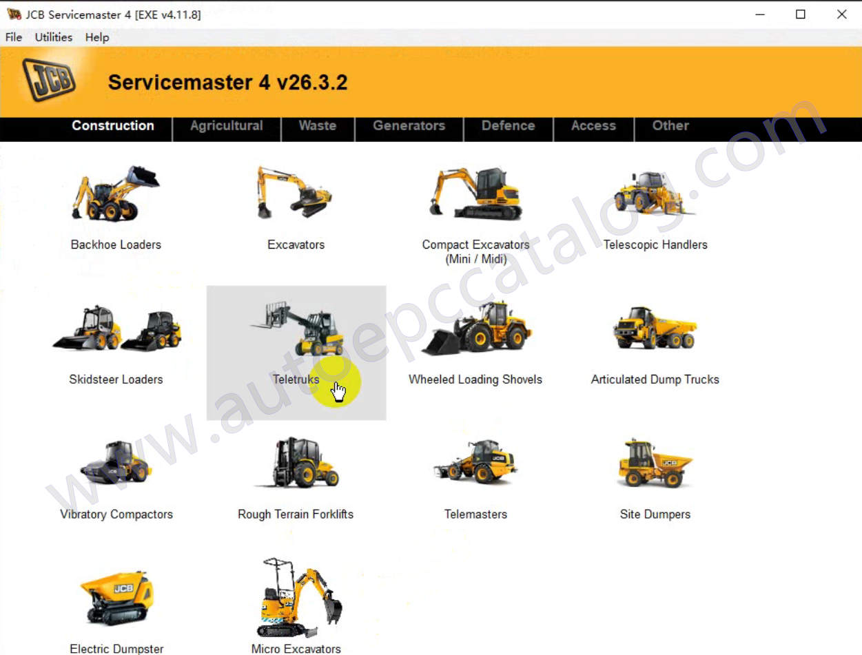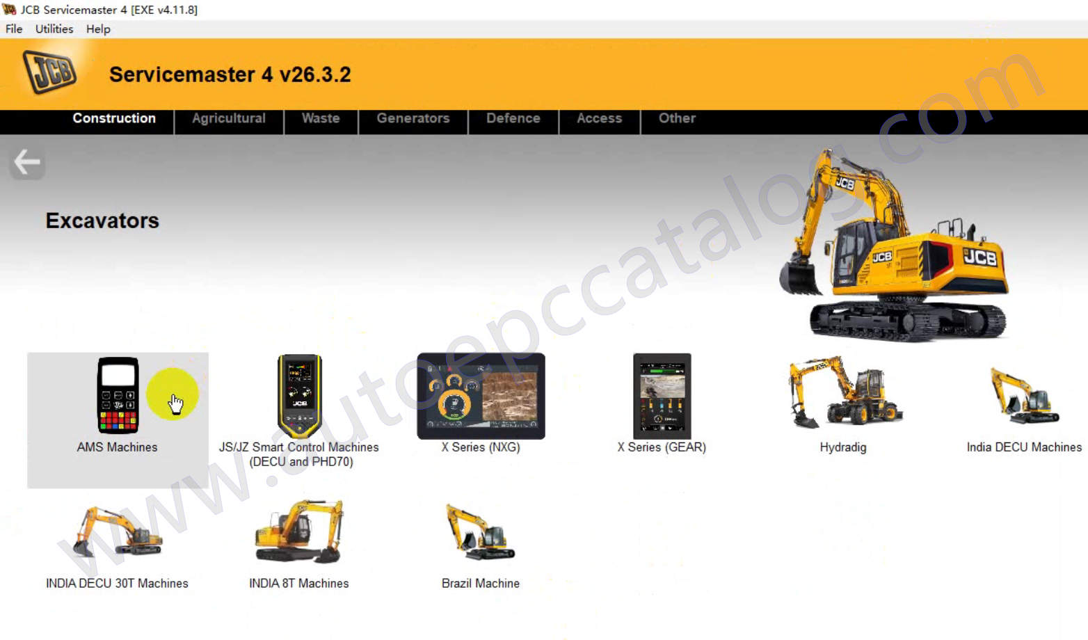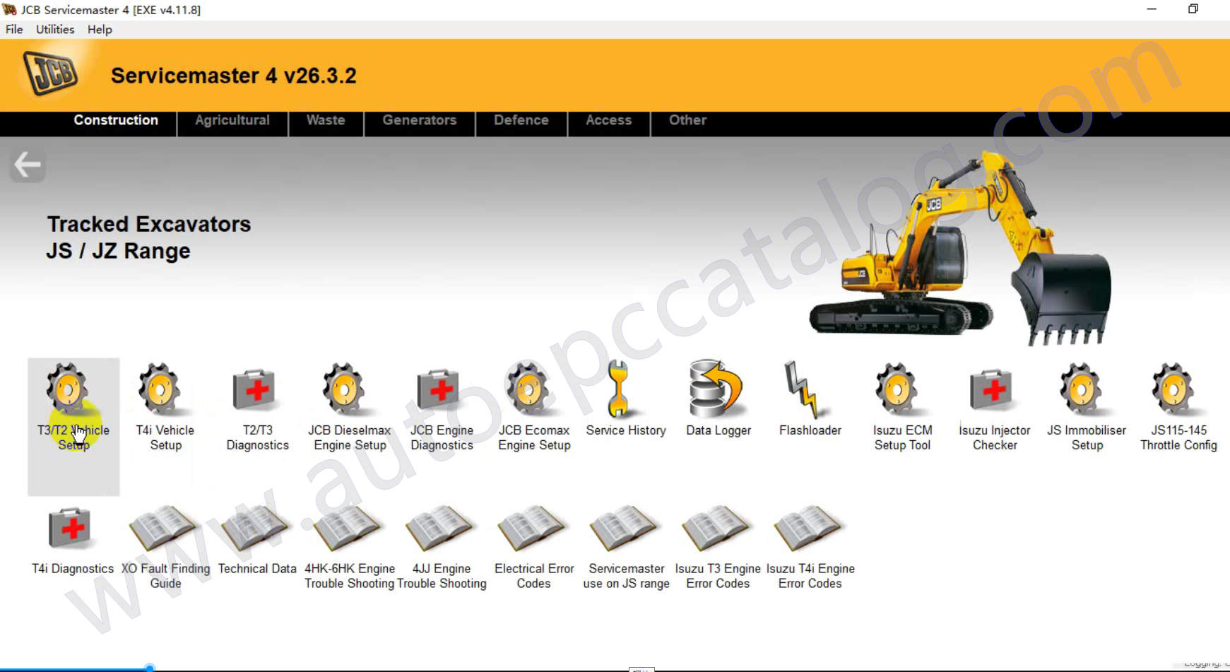 JCB ServiceMaster is an application allowing engineers to diagnose/setup the various electronic control units within the JCB product range. The tools comprises of a Front End GUI allowing the user to select the machine which they wish to work on as well as a number of various tools which allow: programming of electronic control units,the diagnosing of electronic issues, the setup of various