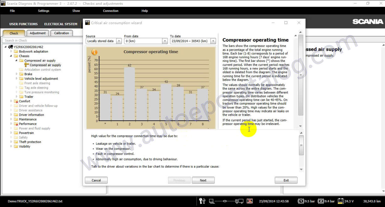 The wizard has been developed specifically for checking the climate system in buses with Scania’s MBS3 electrical system for body.