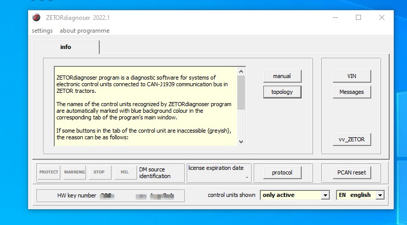 Zetor Diagnoser diagnostic software is special designed for Zetor agricultural tractor machine diagnostics to build communication CAN-1939 of electronic control units.
