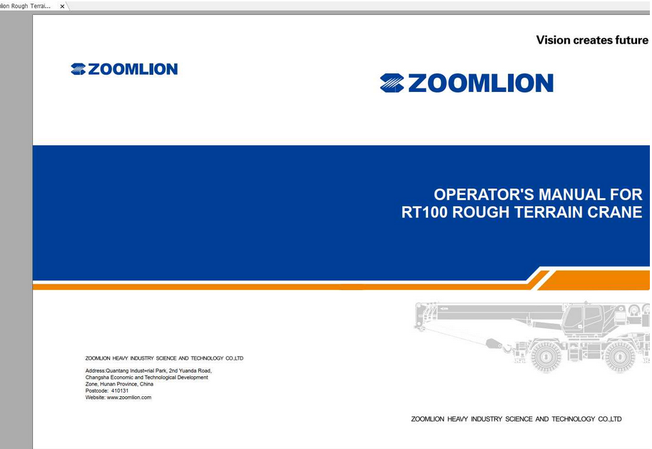 Zoomlion Rough Terrain Crane RT100 Operation Manual.pdf