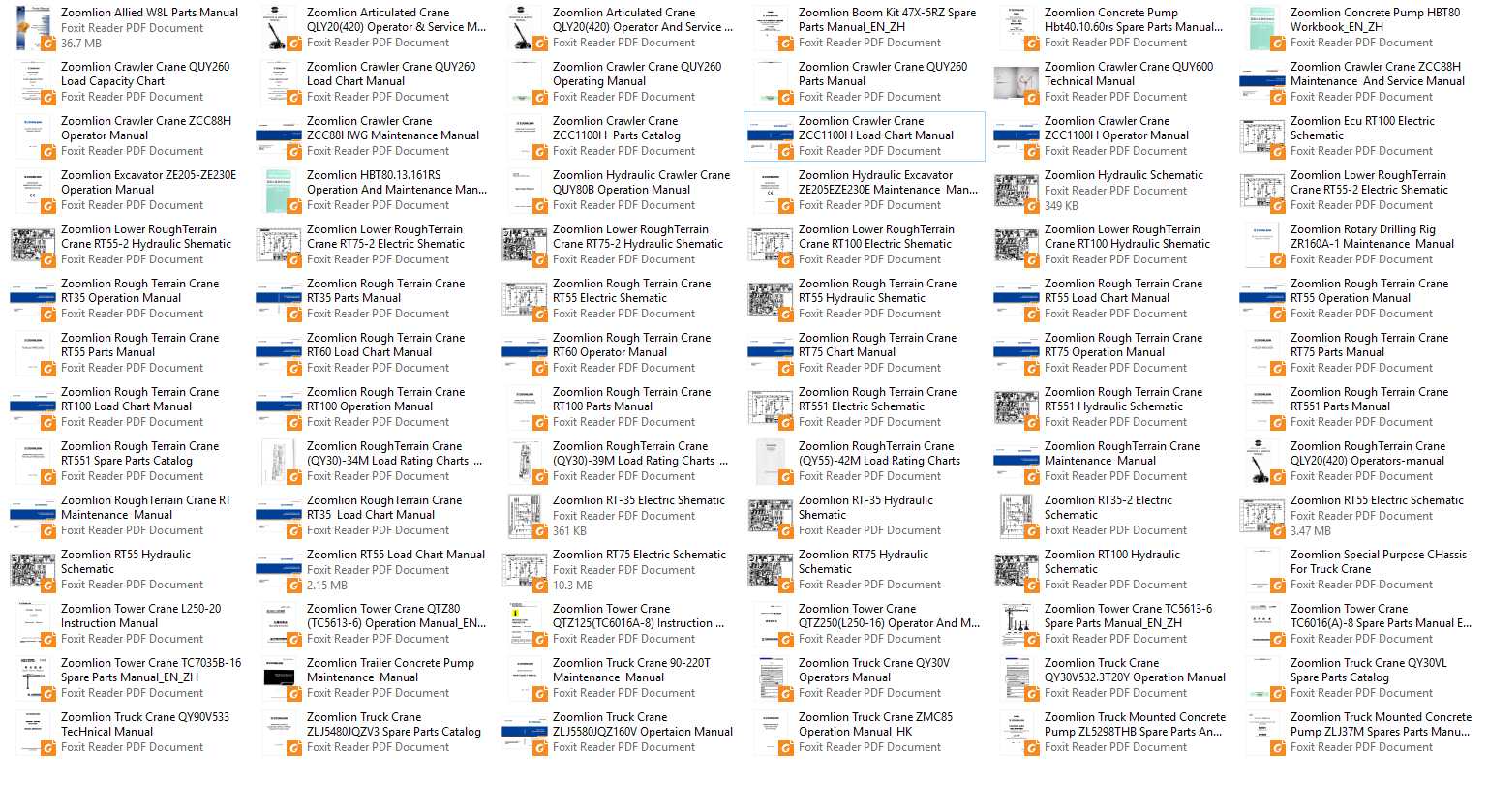 Zoomlion Crane Excavators Workshop Manual PDF 934MB Collection Manuals